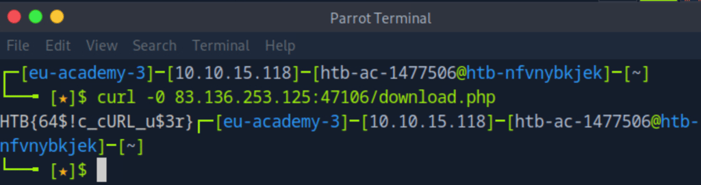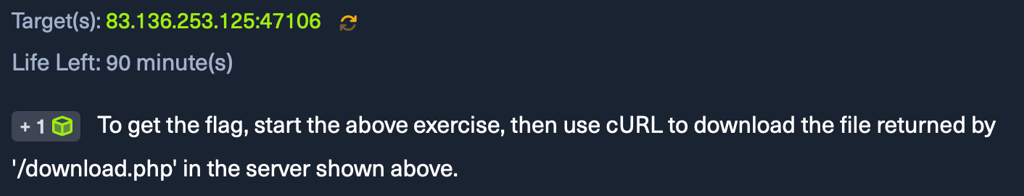 Objective : To get the flag, start the above exercise, then use cURL to download the file returned by '/download.php' in the server shown above.