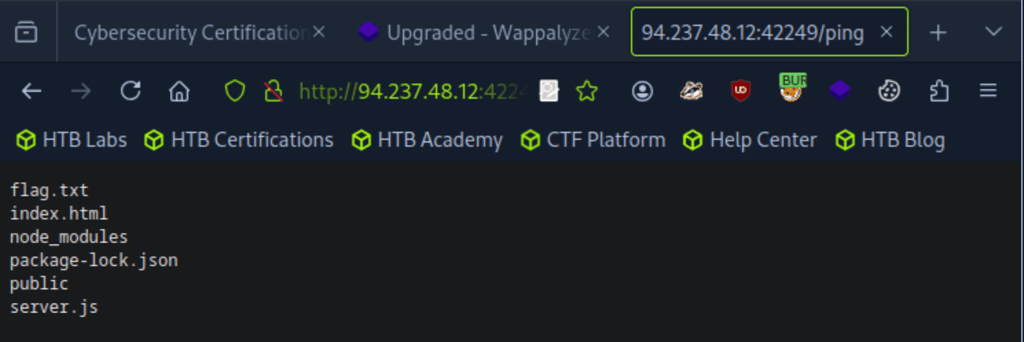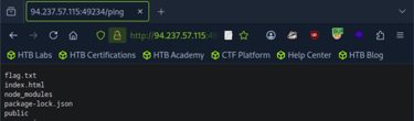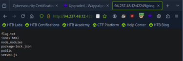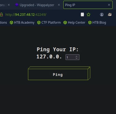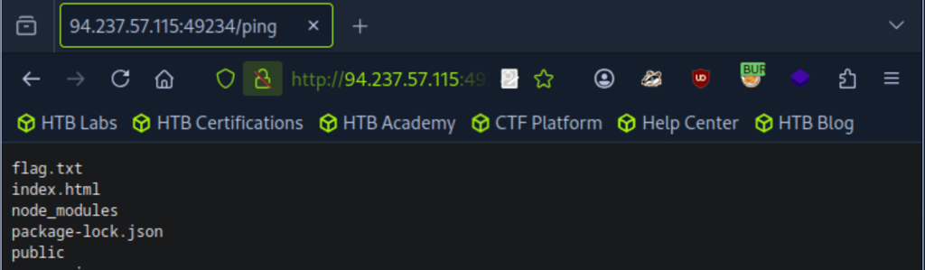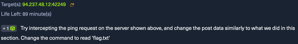 Objective : Try intercepting the ping request on the server shown above, and change the post data similarly to what we did in this section. Change the command to read 'flag.txt'