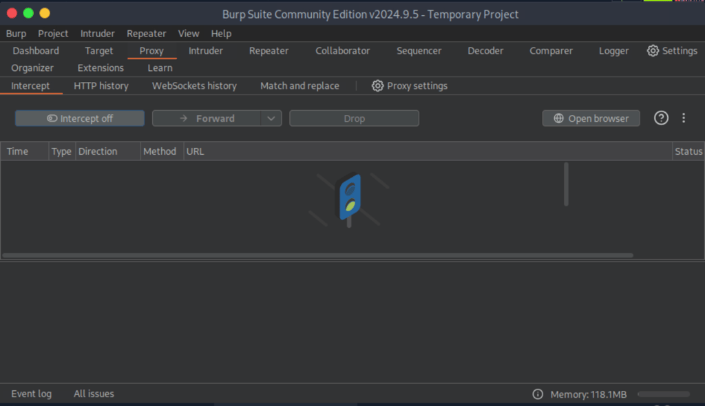 We'll open Burp Suite — a powerful web proxy tool used for intercepting and analyzing HTTP requests.
