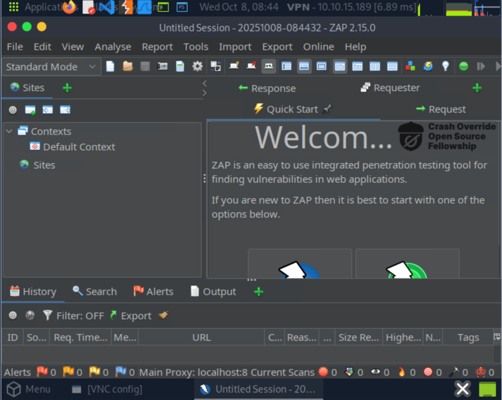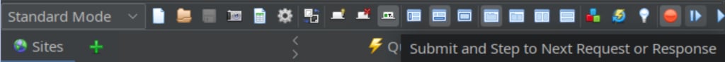 Open owasp-zap (see below to see how it looks like), and toggle the green button on the top right corner. In ZAP, interception is off by default, as shown by the green button on the top bar (green indicates that requests can pass and not be intercepted). We can click on this button or click CTRL+B to toggle it on/off (Red = on).
