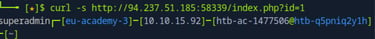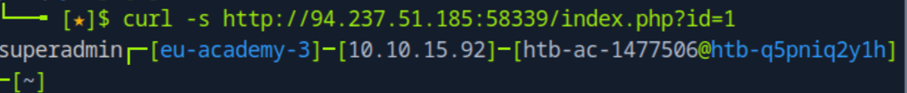 To solve this, we will use the command : curl -s http://<target ip>/api.php?id=1