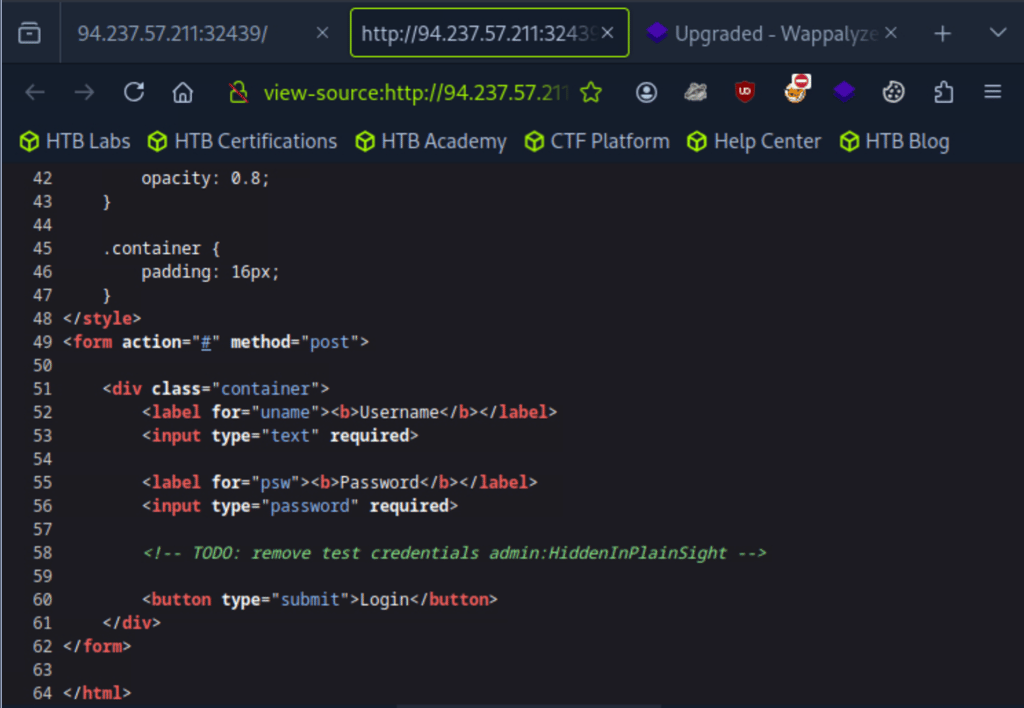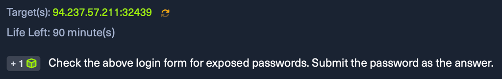 Objective: Check the above login form for exposed passwords. Submit the password as the answer.